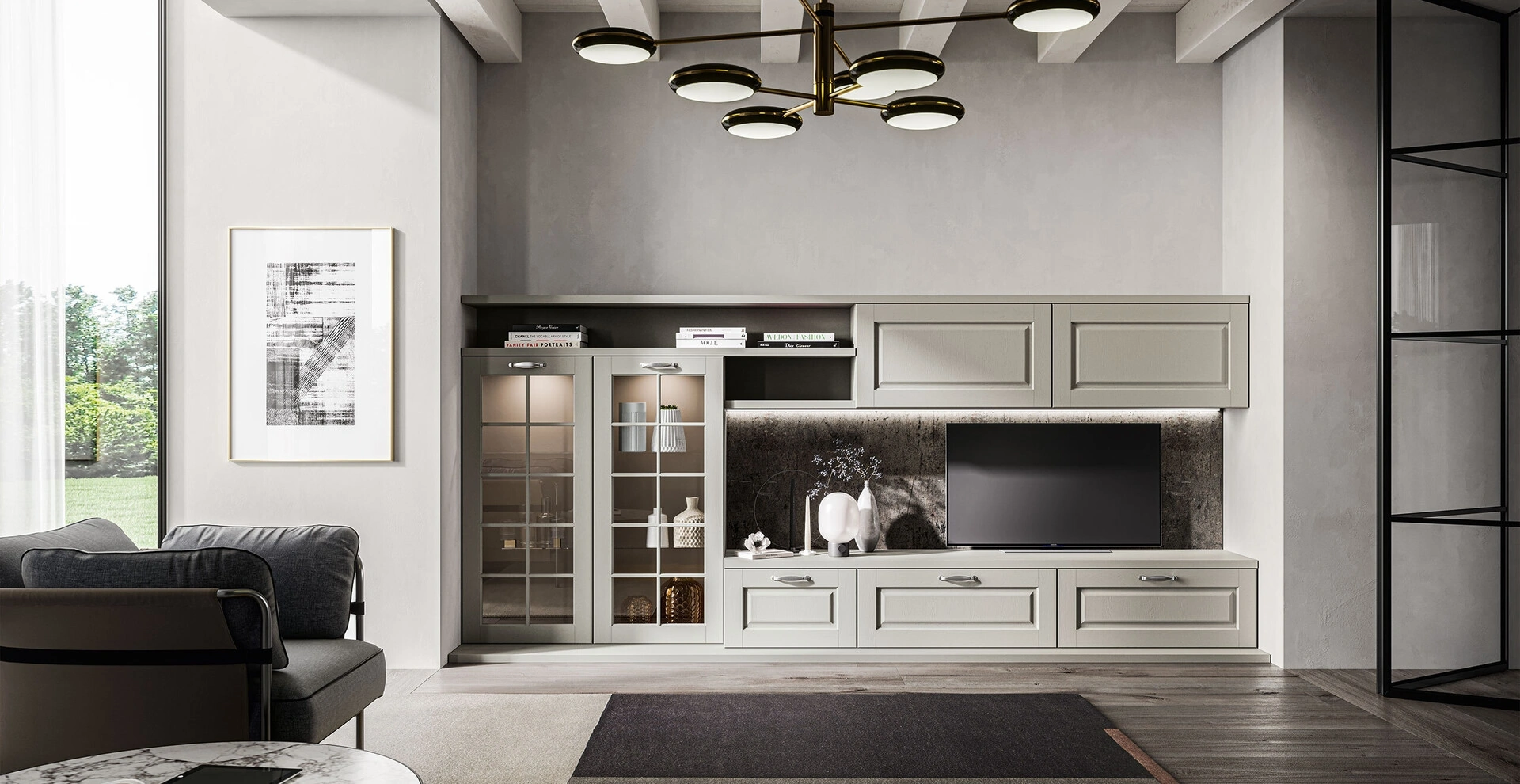 La Parete Attrezzata Living Asolo di Arredo3 nell'immagine, con finitura in legno, risolve le più particolari problematiche abitative di spazio e stile senza rinunciare alla ricerca stilistica. Anche in un soggiorno non troppo grande, questo tipo di arredo riesce a ottimizzare gli spazi ottimizzando ogni angolo e garantendo massima componibilità tipica delle soluzioni classiche. Questo modello costituisce tutta l'eccellenza che il brand assicura grazie a pluriennale esperienza e grande passione nel settore dell'arredo e del design. Un po’ librerie, un po’ contenitori ed espositori: le Pareti Attrezzate sono ideali per attrezzare uno spazio operativo e pratico.